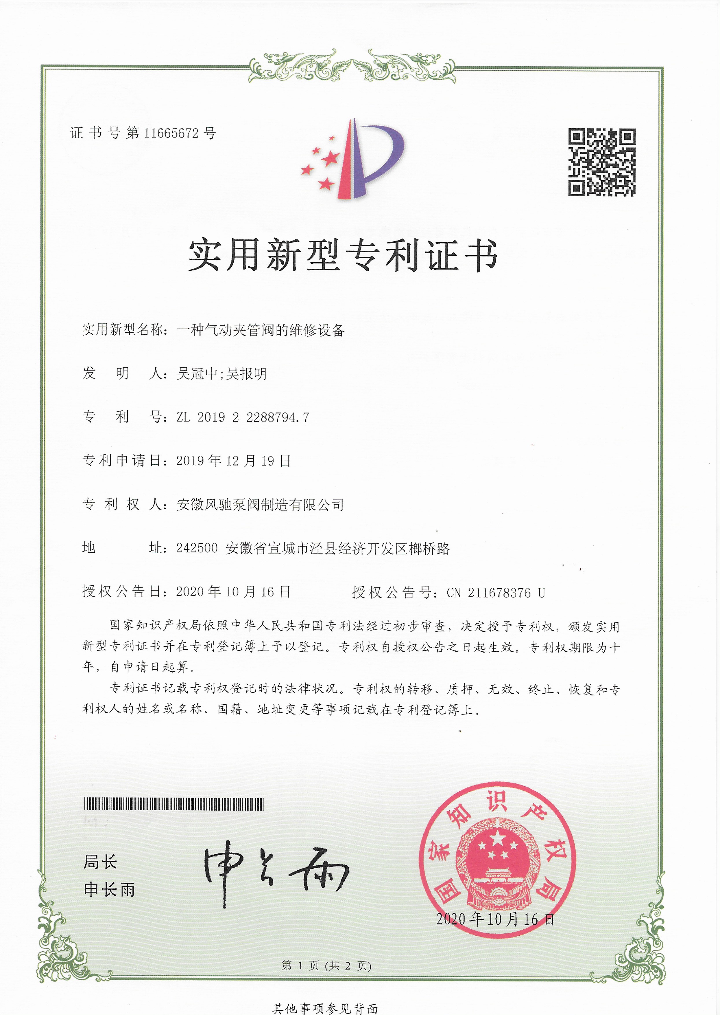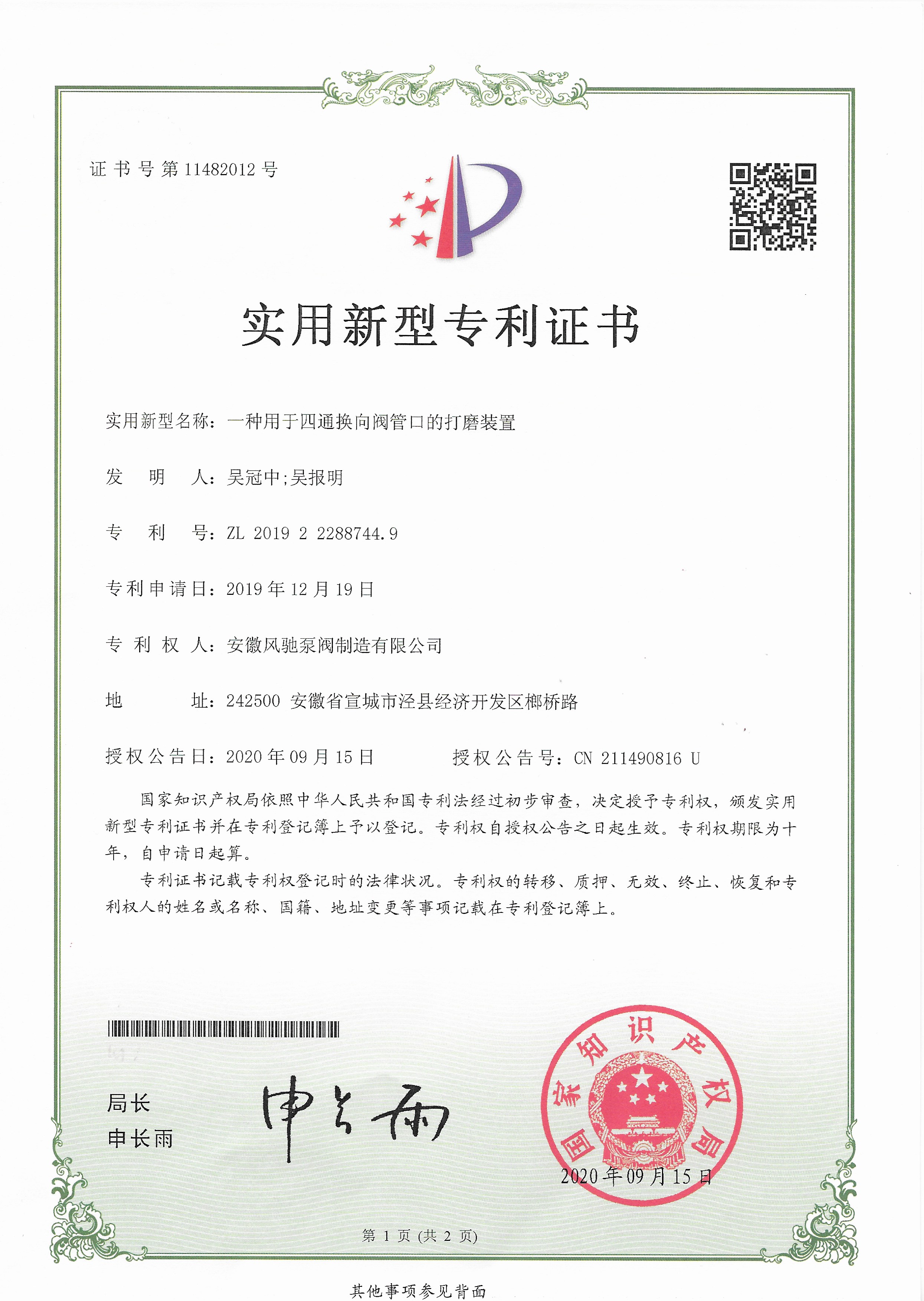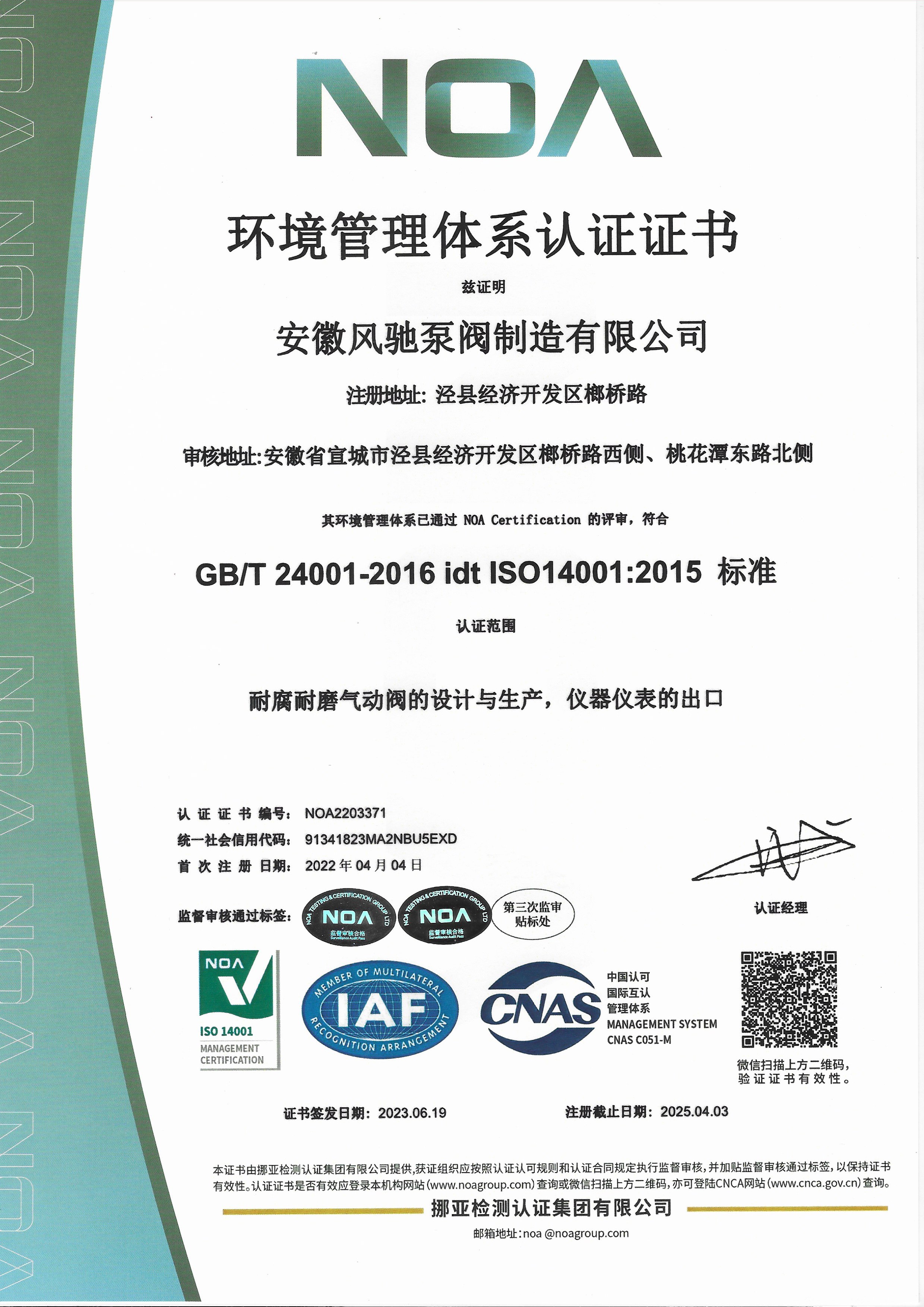 Anhui Fengchi Pump and Valve Manufacturing Co., Ltd. telah berturut-turut lulus Sertifikasi sistem manajemen mutu ISO9001-2015, Sertifikasi Sistem Manajemen Lingkungan ISO14000, sertifikasi sistem Manajemen Kesehatan dan Keselamatan Kerja ISO45001, sertifikasi EU CE, sertifikasi Rohs.